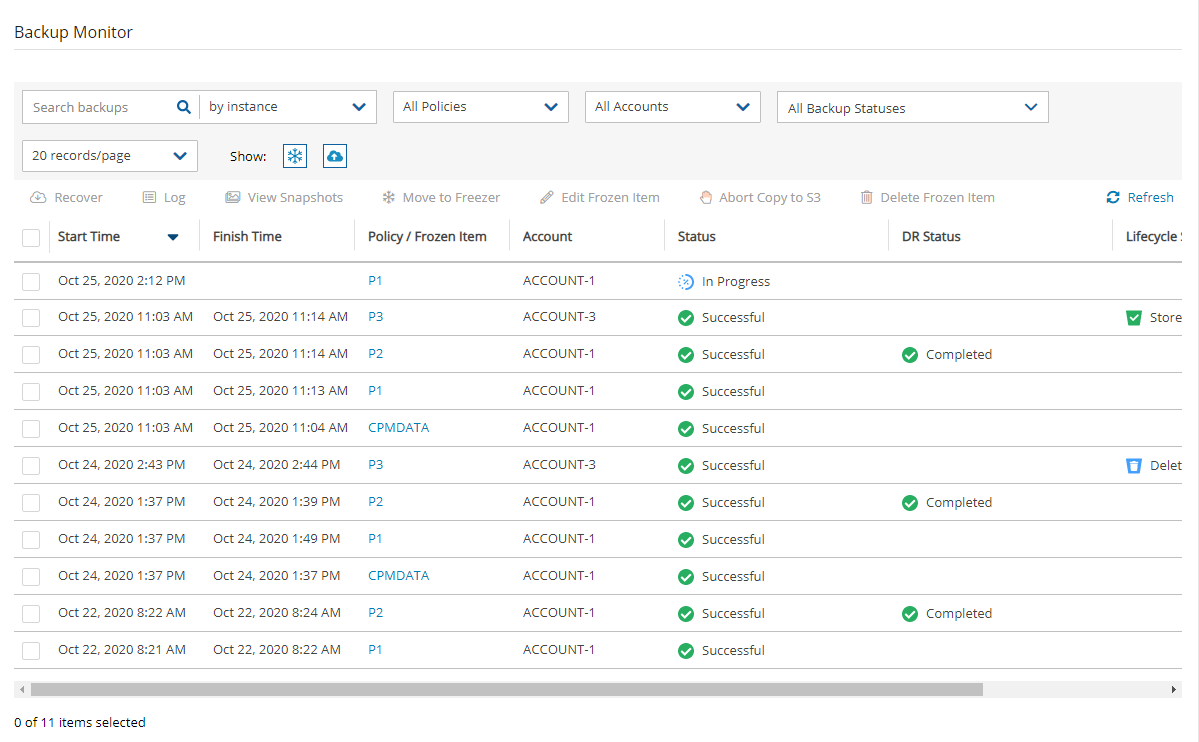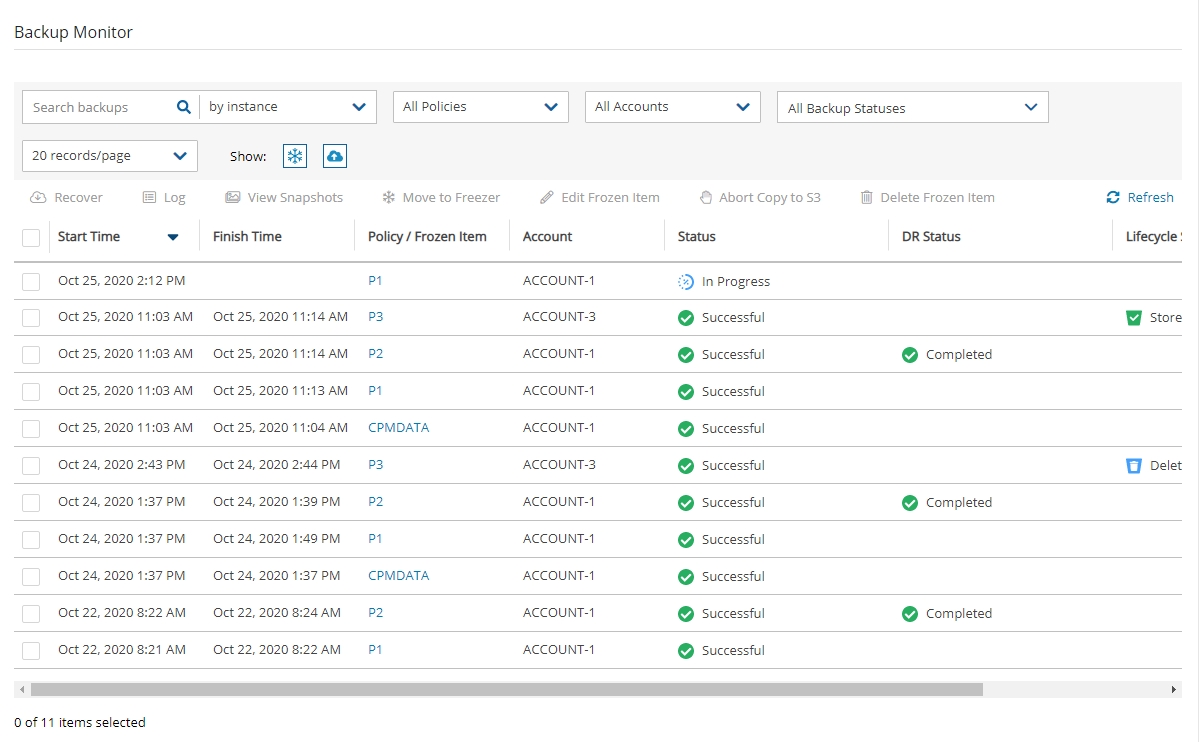 For creating a simple AWS backup policy, see section 4.3. While a backup schedule is geared toward a production environment, it is optional, as you can run a policy independently of a schedule. To set a backup schedule, see section 4.2.
