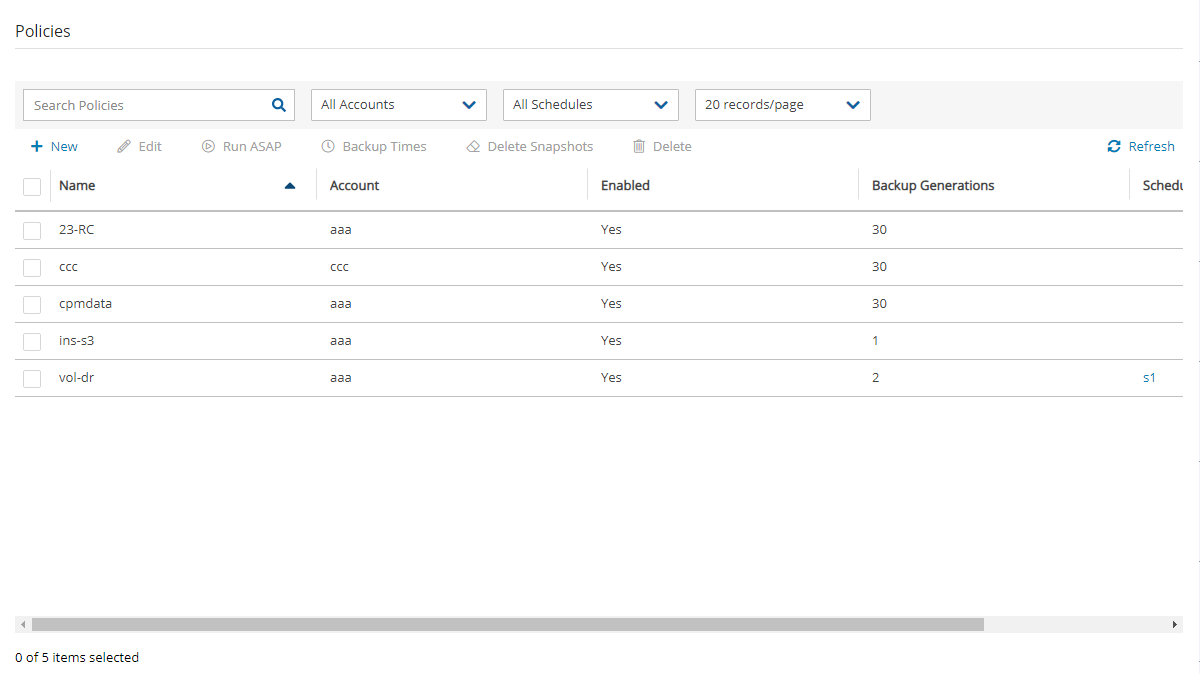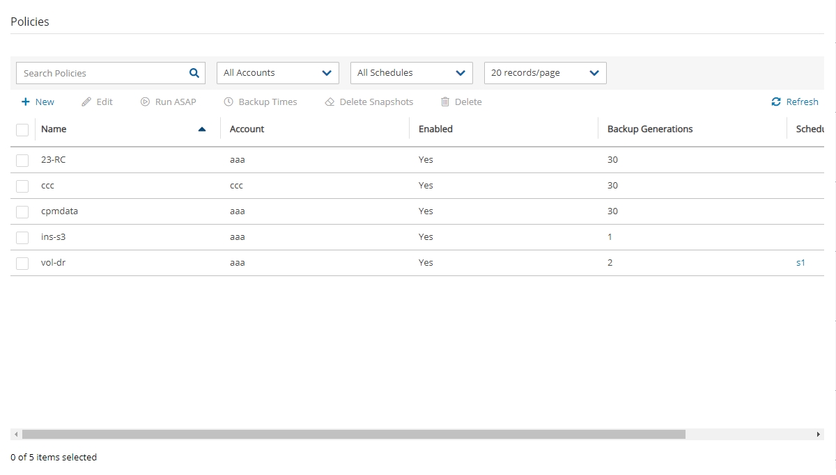 If you want to initiate an immediate backup, select a policy and then select Run ASAP.