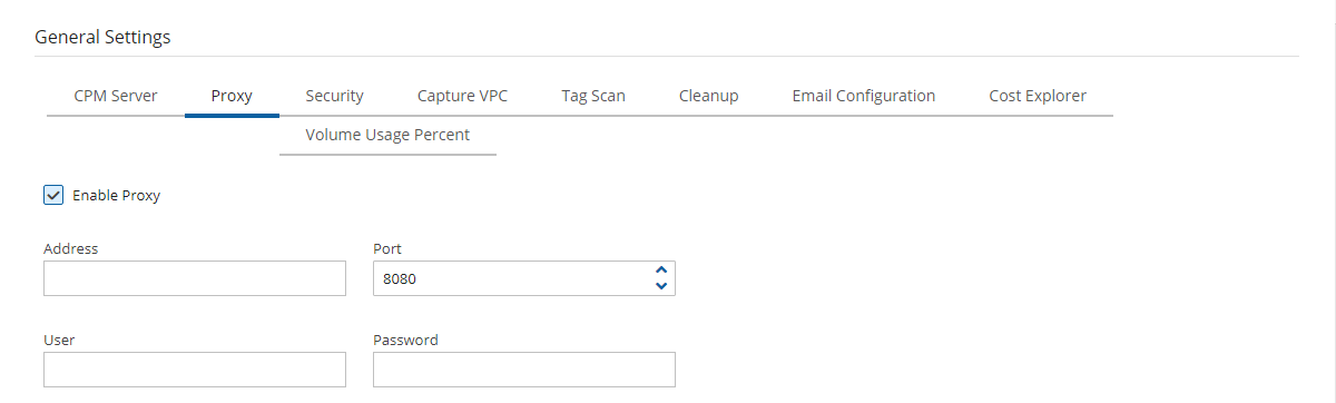 Server Settings > General Settings. Select or clear Enable Proxy. If enabled, enter the requested proxy information.