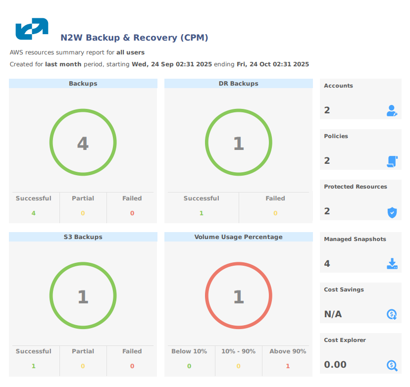Even if there are no issues, a daily summary is a reminder that everything is ok. If something happens and N2W crashed altogether, and your monitoring solution did not report it, you will notice the Daily Summary will stop.