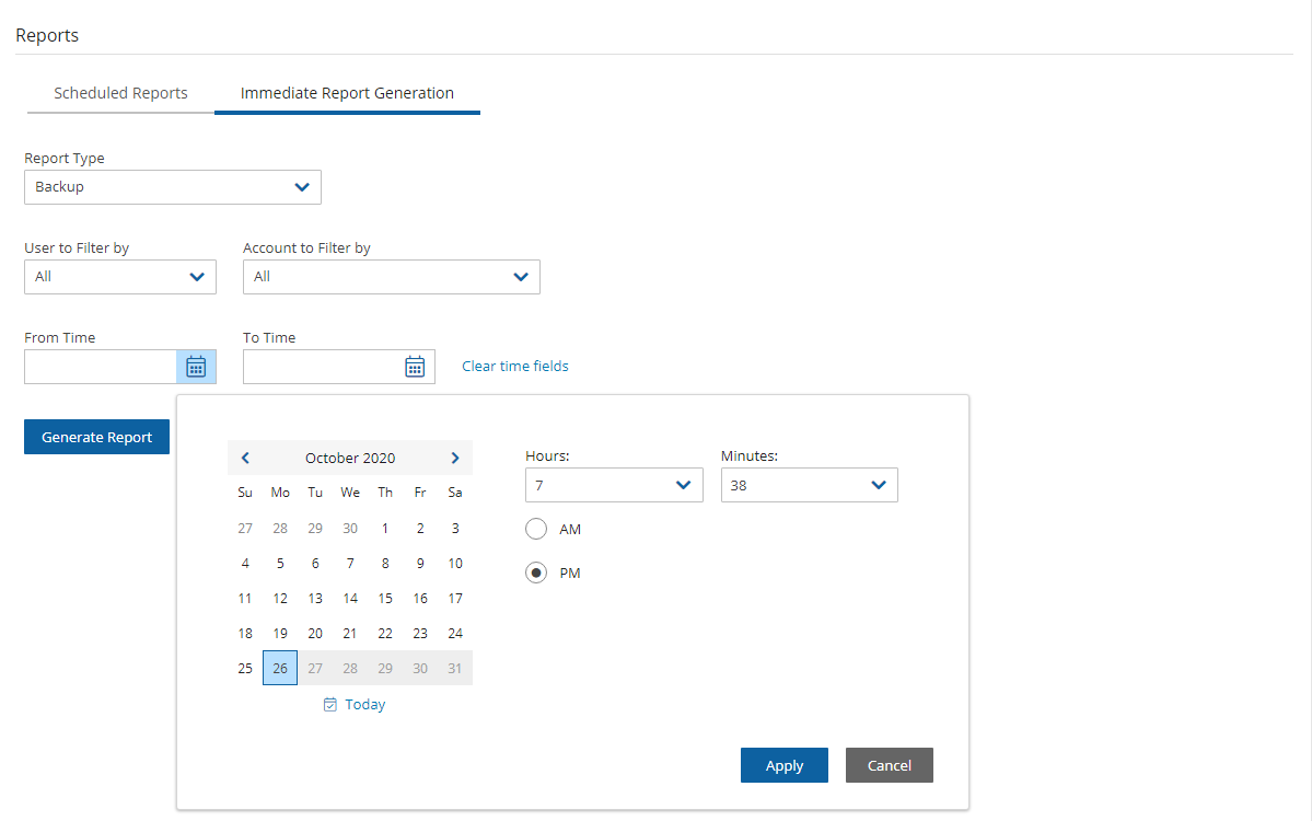 and choose the From and To date and time values. Select Apply after each definition.Select Generate Report. The output will be downloaded by your browser.