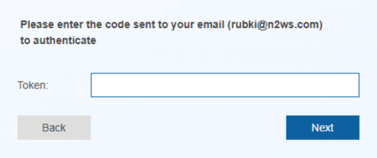 3\.      In subsequent usage, the login process will display the email address to use. Confirm by selecting **Next**, and then enter the confirmation email code in the **Token** box.