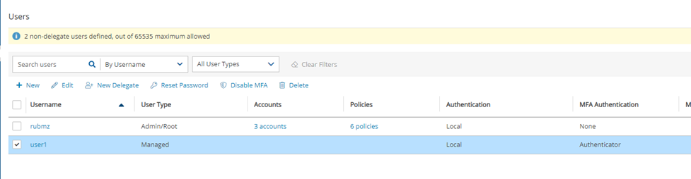 For each user, whether it is the root user, an independent user, or a managed user, the <img src="https://content.gitbook.com/content/5oB64hgFIX2jdQ2O72cF/blobs/5Cswu3hKJMUFdNrcWoAm/delegate%20icon.png" alt="" data-size="line">**Manage Delegates** command in the **Users** list screen that opens the Delegates screen for that user. Selecting an existing entry in the Delegates column also opens the Delegates screen for that user.