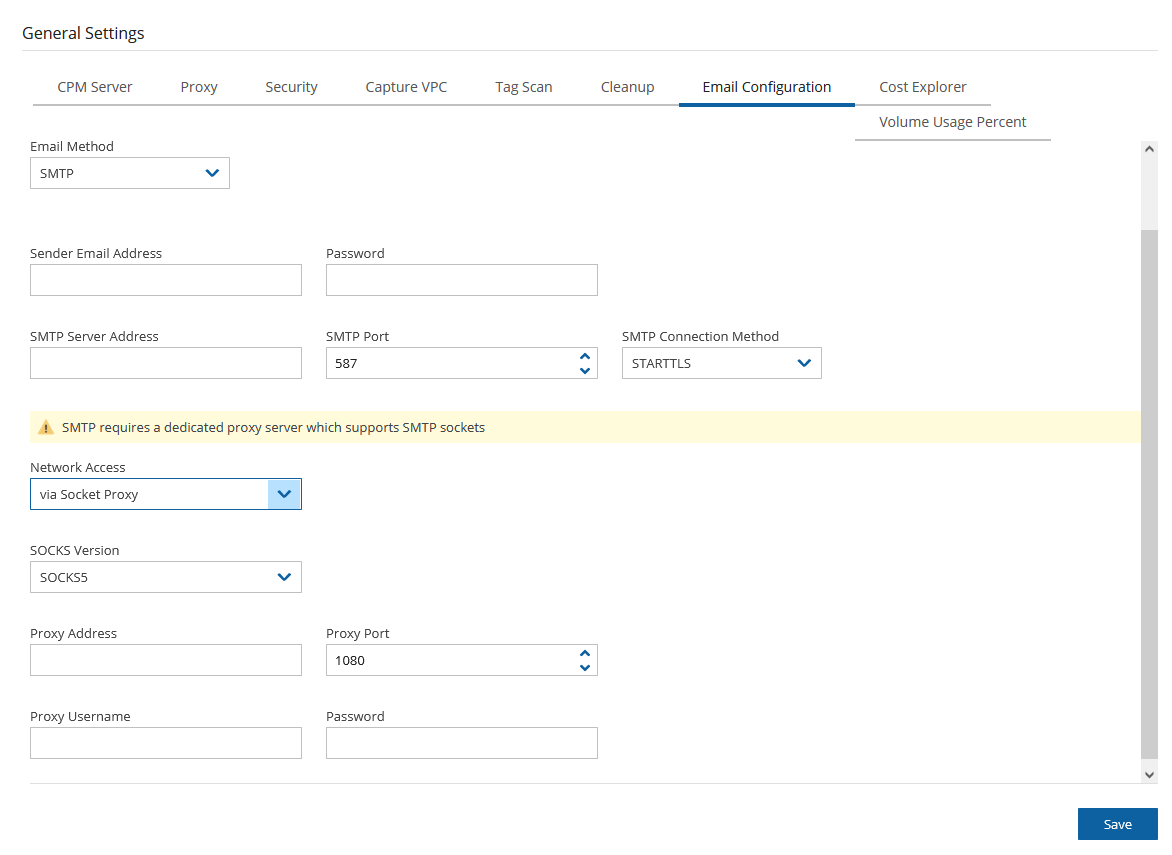 SMTP requires a dedicated proxy server that supports SMTP sockets.