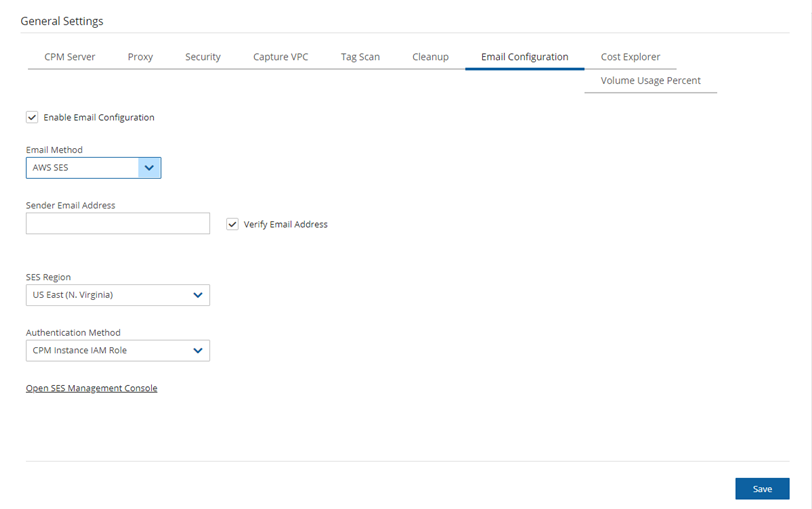 In the Email Method list, select AWS SES or SMTP for other accounts.