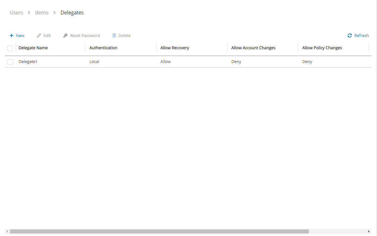 Manage Delegates command in the Users list screen that opens the Delegates screen for that user. Selecting an existing entry in the Delegates column also opens the Delegates screen for that user.