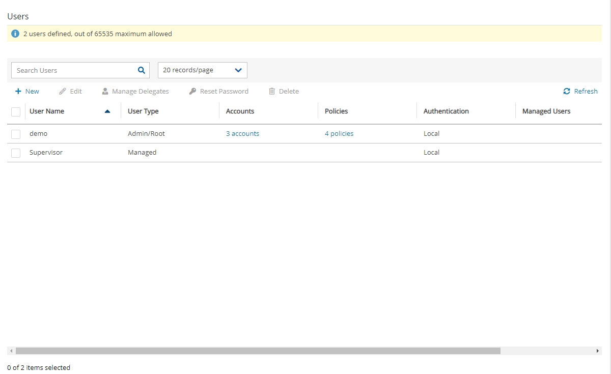 Managed Users are users who can log on and manage their backup environment, or the root/admin user or independent user can do it for them. The root user can perform all operations for managed users: add, remove, and edit accounts, manage backup policies, view backups, and perform recovery. Furthermore, the root user, or independent user, can receive alerts and notifications on behalf of managed users. The root/admin user can also configure notifications for any managed user and independent users can configure notifications for their managed users (section 17.3.1.) To create a managed user, select