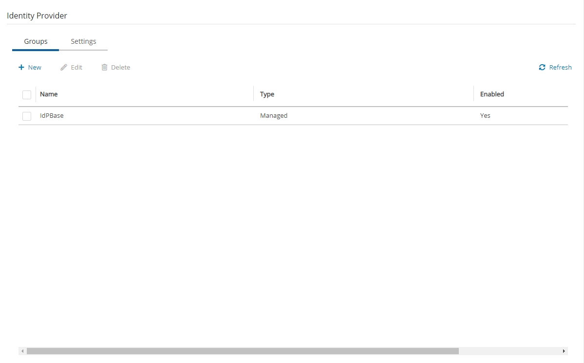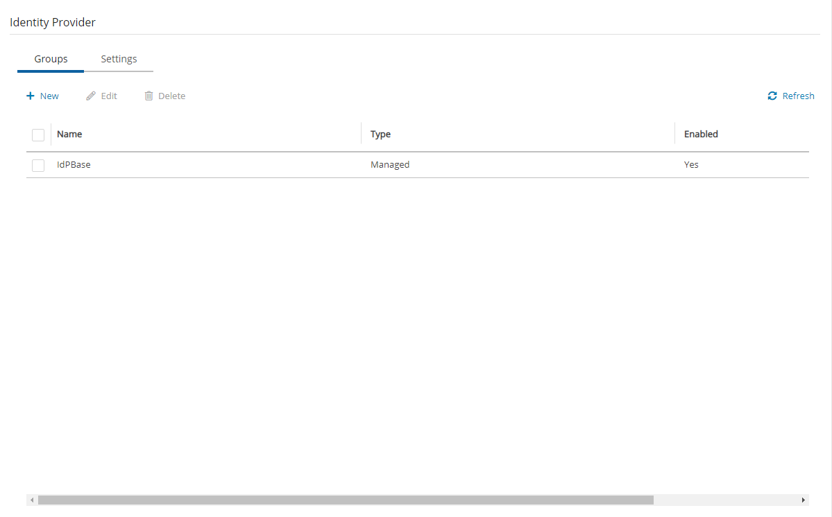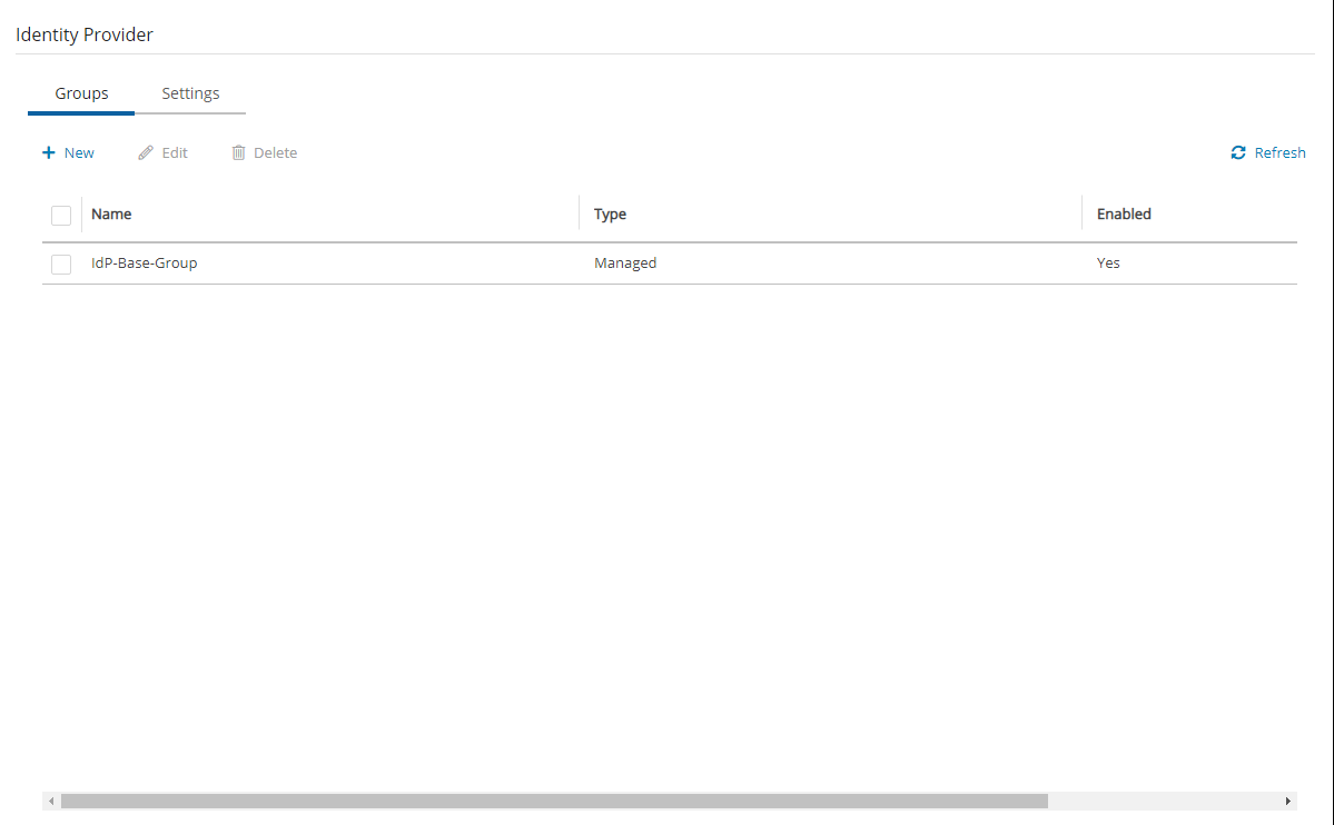 To enable the group, select the Settings tab, and then select Identity Provider. Several IdP related parameters are presented.