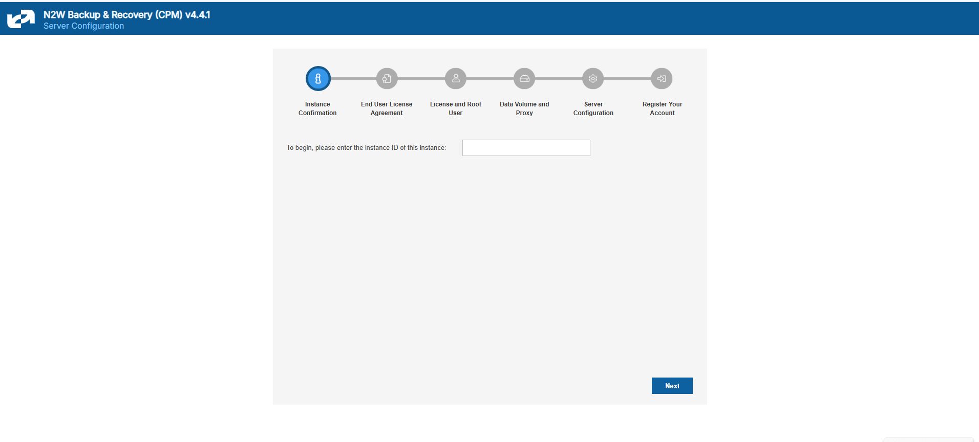 To initially be identified as the owner of this instance, you are required to type or paste the N2W server instance ID. This is just a security precaution.