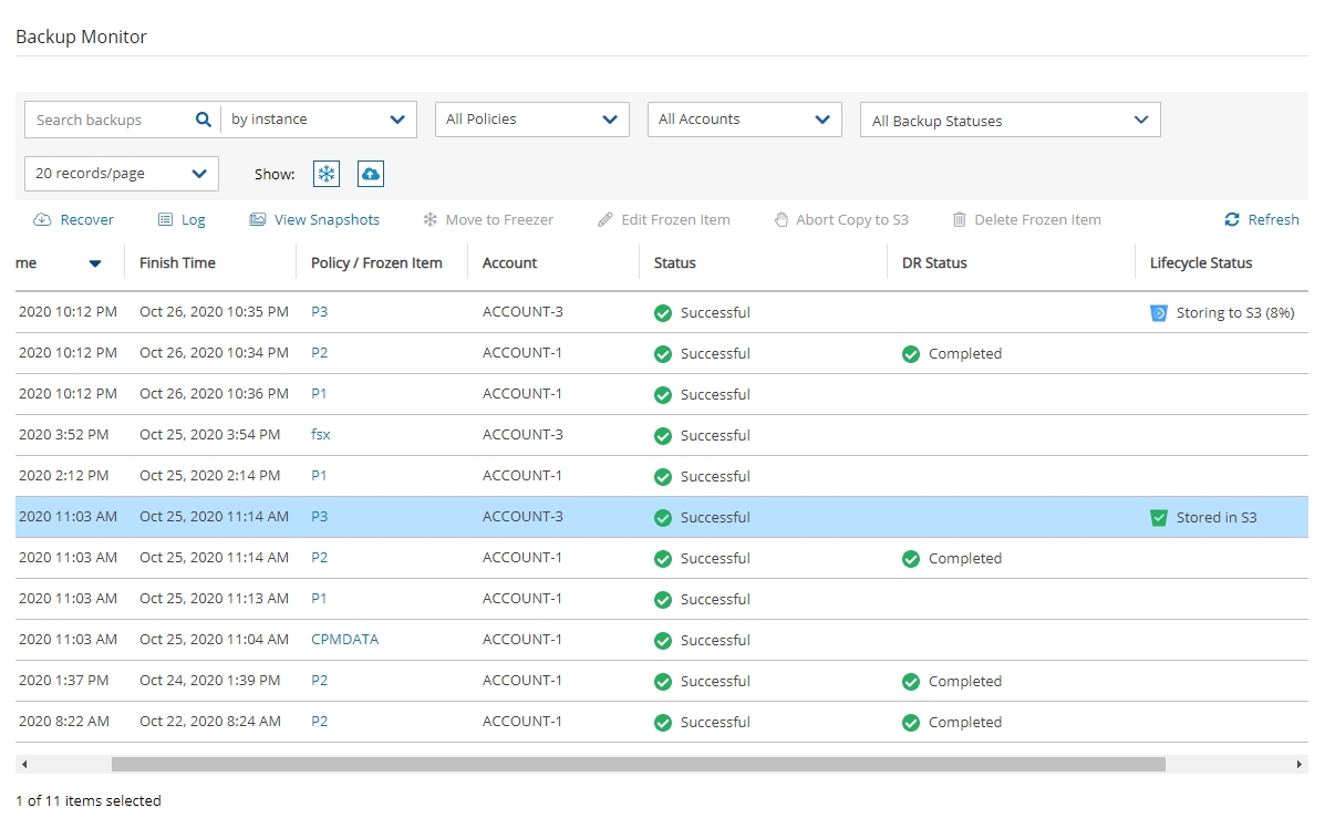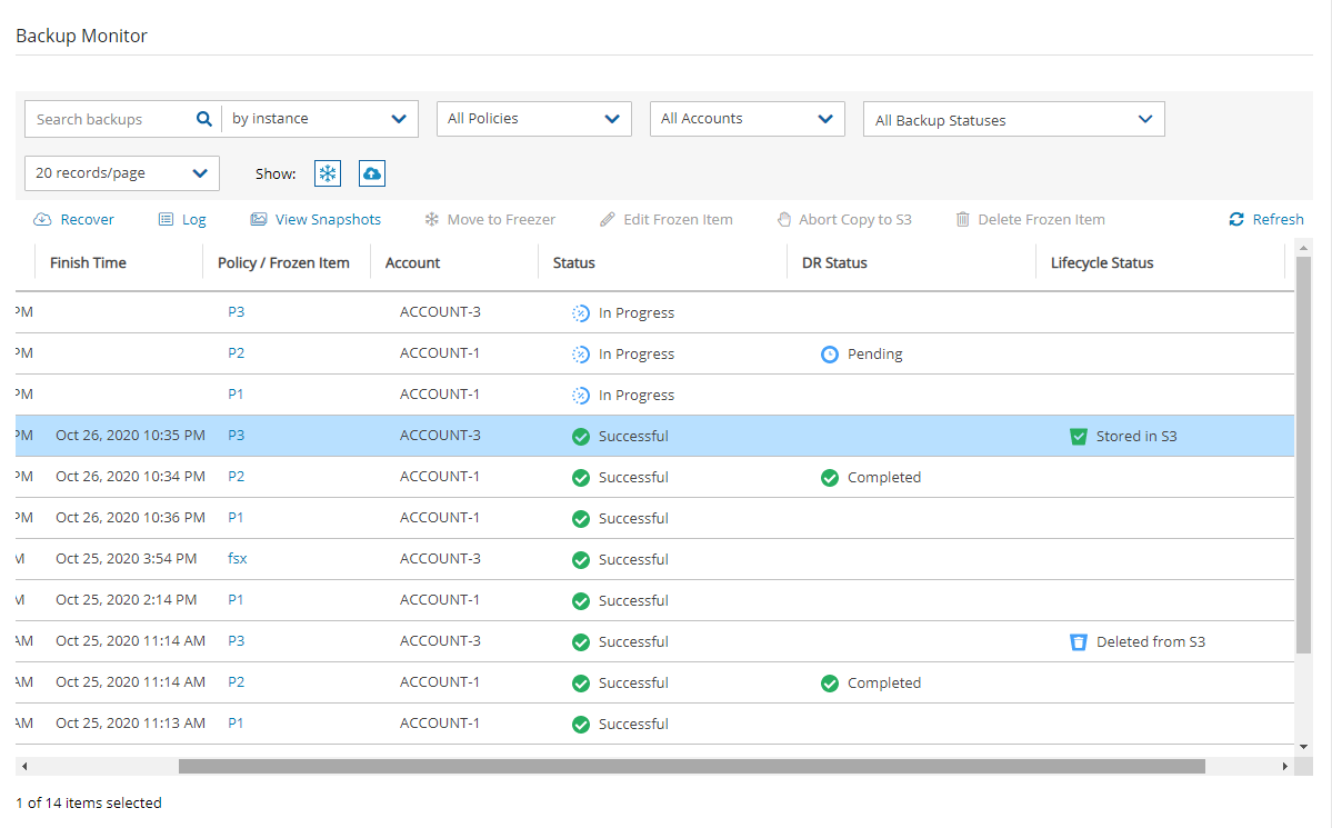 Marked as archived – Some or all the snapshots of the backup were not successfully moved to Archive storage, either due to the user aborting the operation or an internal failure. However, the snapshots in the backup will be retained according to Archive retention policy, regardless of their actual storage.