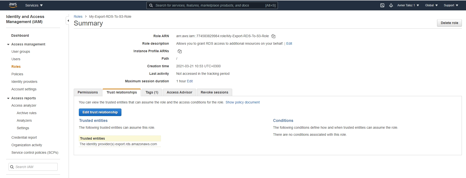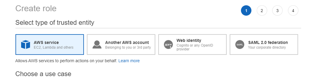 In AWS, create an Export Role with required permissions. See section 21.4.1.