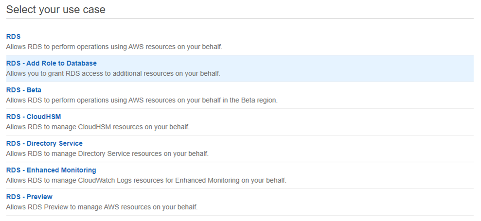 RDS MySQL – Supported versions are 5.6.40 and up, 5.7.24 and up, and 8.0.13 and up