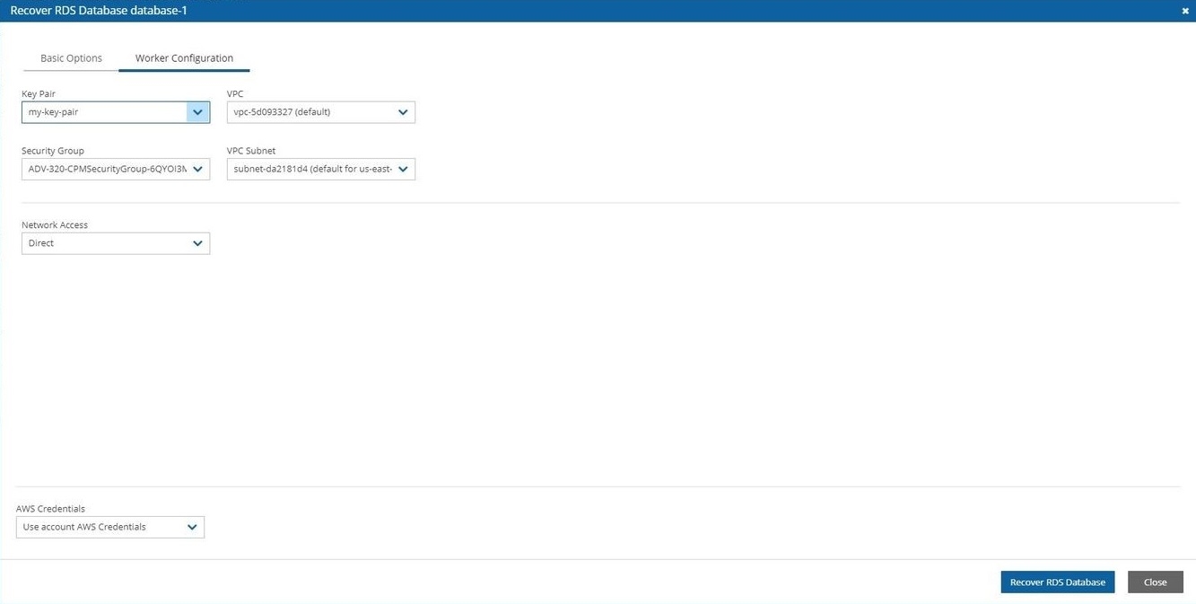 Select Recover RDS Database.