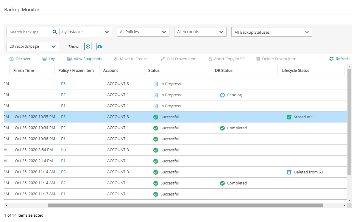 In addition to creating and managing EBS snapshots, N2W can store backups in a Storage Repository in Simple Storage Service (S3) and S3 Glacier, allowing you to lower backup costs when storing backups for a prolonged amount of time. In addition, you can store snapshots of AWS volumes in an Azure Storage Account repository, thereby gaining an additional level of protection. N2W allows you to create a lifecycle policy, where older snapshots are automatically moved from high-cost to low-cost storage tiers.