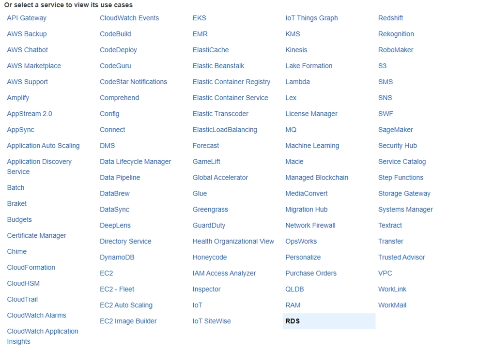 RDS PostgreSQL – Supported versions are 9.6.6 – 9.6.9, 9.6.12 and up, 10.7 and up, 11.2 and up, 12.0 and up, and 13.1 and up