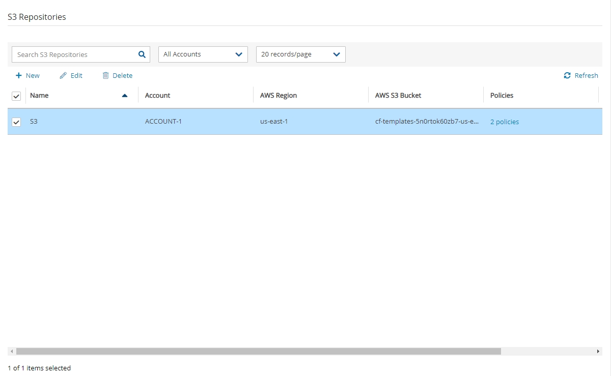 New menu, select AWS Storage Repository.In the Storage Repositories screen, complete the following fields, and select Save when finished.