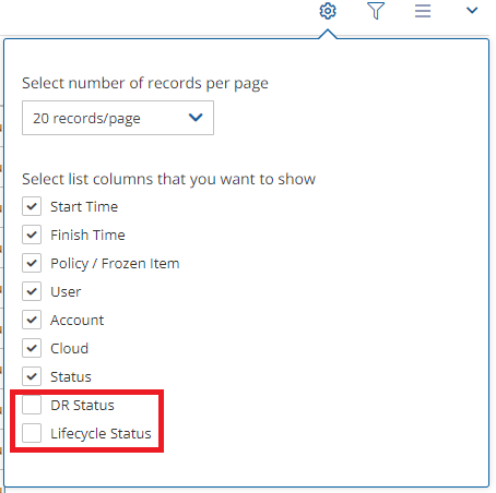 For example, in the following table, the **DR Status** and **Lifecycle Status** columns are empty and redundant: