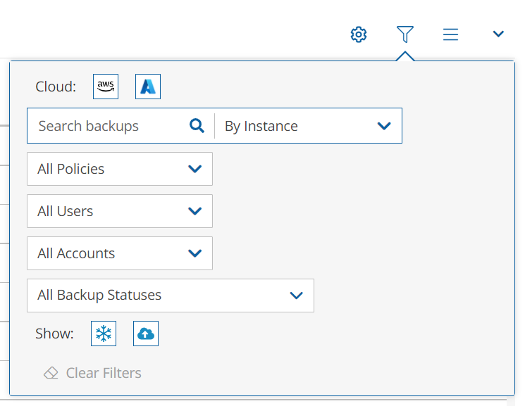 To open the Filters dialog box, select<img src="https://content.gitbook.com/content/5oB64hgFIX2jdQ2O72cF/blobs/Vmy0mNK6gkIkLhS9Zzoe/Filter%20bar%20icon.png" alt="" data-size="line">: <img src="https://content.gitbook.com/content/5oB64hgFIX2jdQ2O72cF/blobs/sLaIS5PkmO9tMIspDjyT/Filters%20dialog.png" alt="" data-size="original">