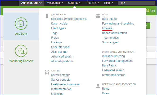 Select Settings on the upper right corner and then select Indexes.