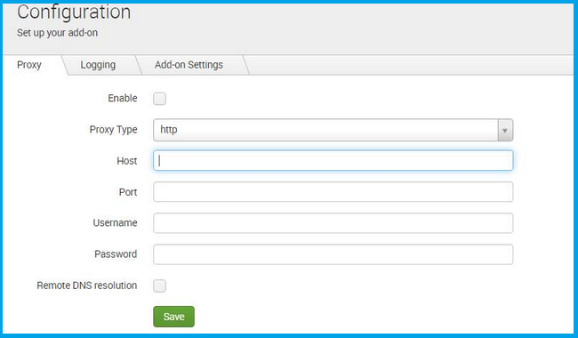 If needed, select the Proxy tab, complete the settings, and select Save.