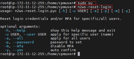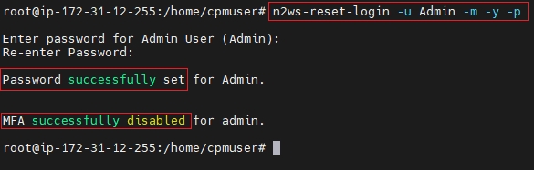 n2ws-reset-login -u <root_user_name> -m -y -p